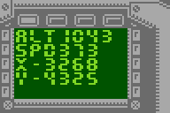 Flight parameters - altitude, speed, coordinates relative to the "bullseye".