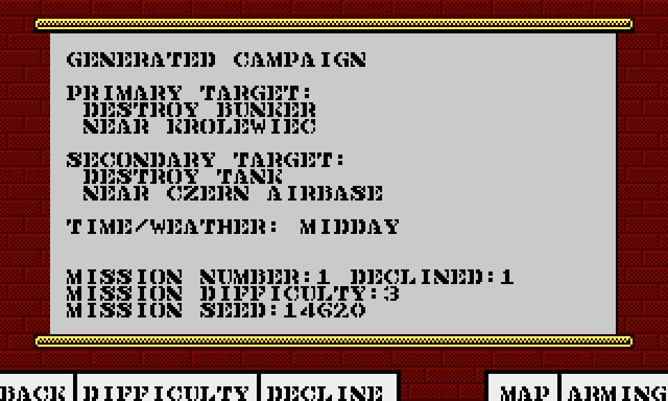 Fly campaign of procedurally generated missions - sequence of missions is generated from the same initial random seed.
